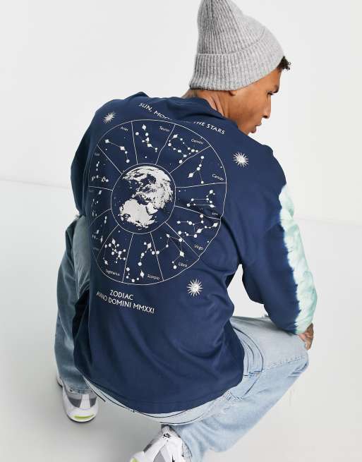 ASOS DESIGN – Granatowy T-shirt oversize z długimi rękawami, efektem tie-dye i nadrukiem na plecach