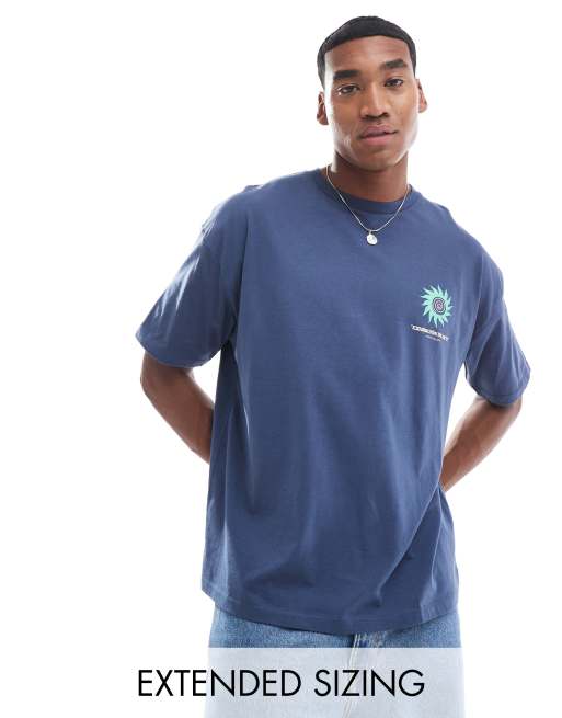 ASOS DESIGN – Granatowy T-shirt oversize z nadrukiem na piersi