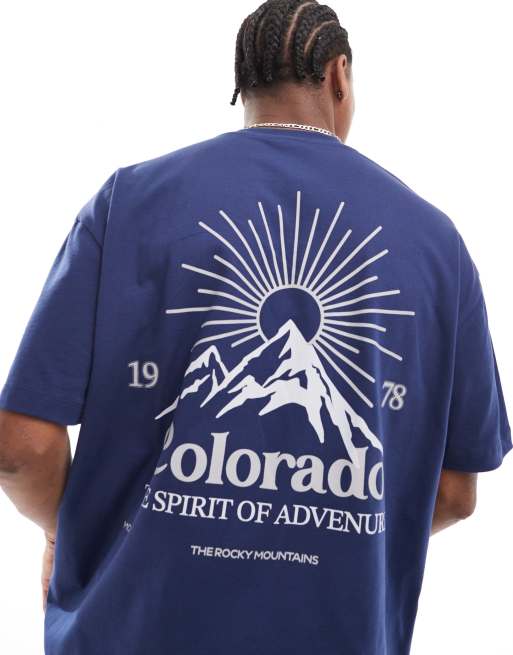 ASOS DESIGN – Granatowy T-shirt oversize z nadrukiem z motywem krajobrazu na plecach