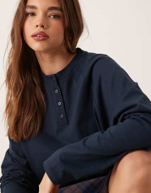 ASOS DESIGN – Gruba granatowa bluza oversize z dekoltem henley