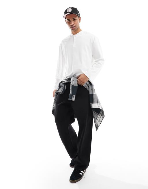 ASOS DESIGN – Gruby biały T-shirt oversize z długimi rękawami i dekoltem typu henley