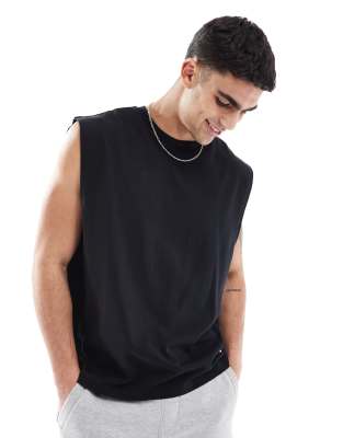ASOS DESIGN – Gruby czarny podkoszulek oversize bez rękawów