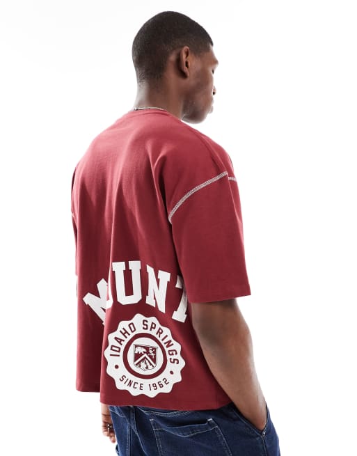 ASOS DESIGN – Gruby czerwony T-shirt oversize o pudełkowym kroju ze sportową grafiką