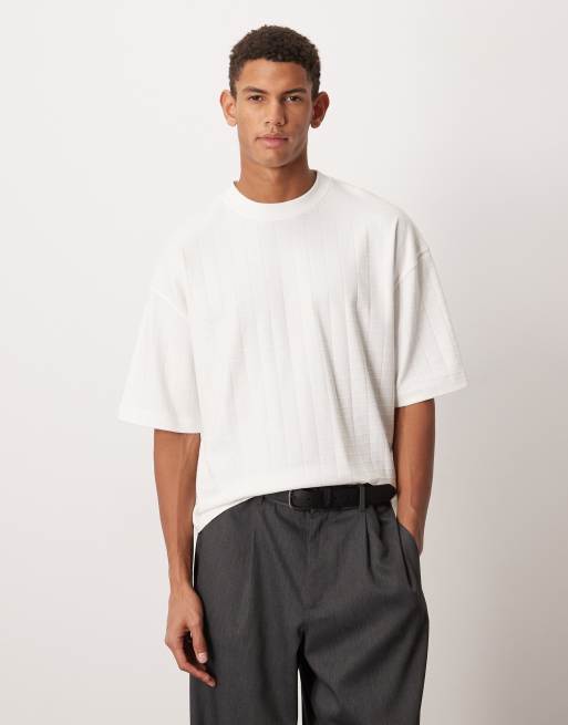 ASOS DESIGN – Gruby fakturowany T-shirt oversize o pudełkowym kroju w białym kolorze