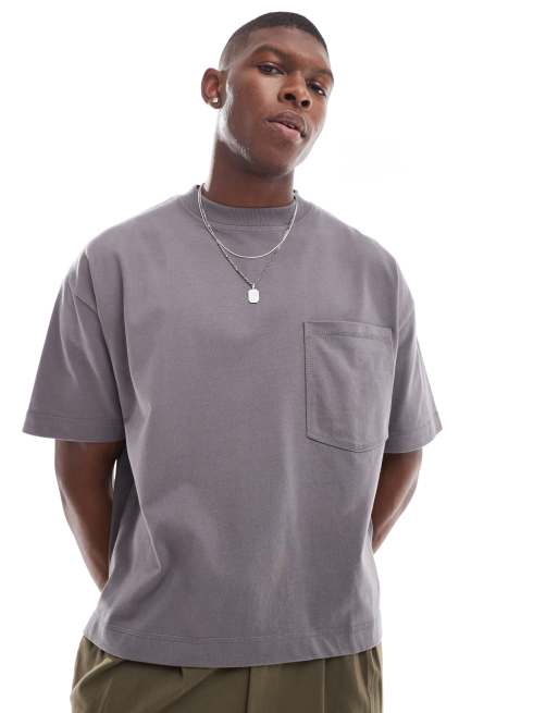 ASOS DESIGN – Gruby grafitowy T-shirt oversize o pudełkowym kroju z kieszenią z przodu