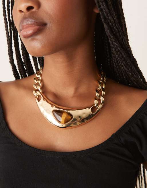 ASOS DESIGN – Gruby naszyjnik z ogniwami w kolorze złota z tygrysim okiem