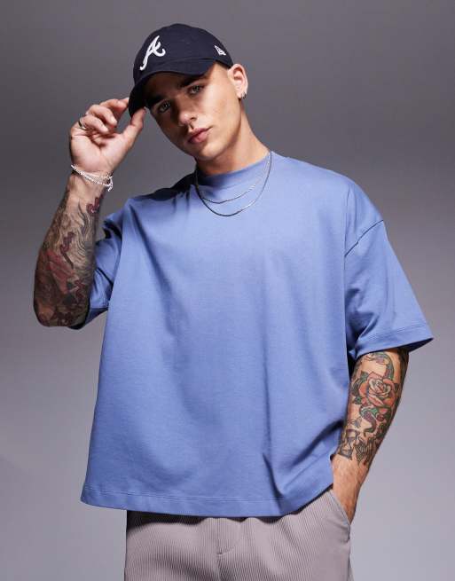 ASOS DESIGN – Gruby niebieski T-shirt o pudełkowym kroju oversize
