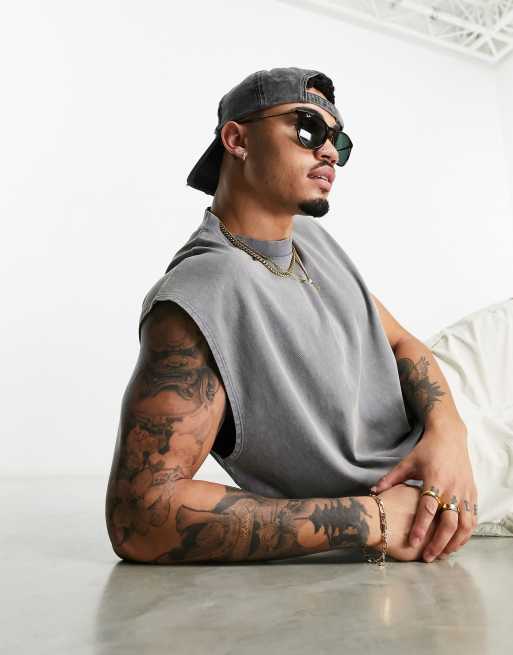 ASOS DESIGN – Gruby podkoszulek oversize z materiału o gramaturze 220 gsm w spranym szarym kolorze