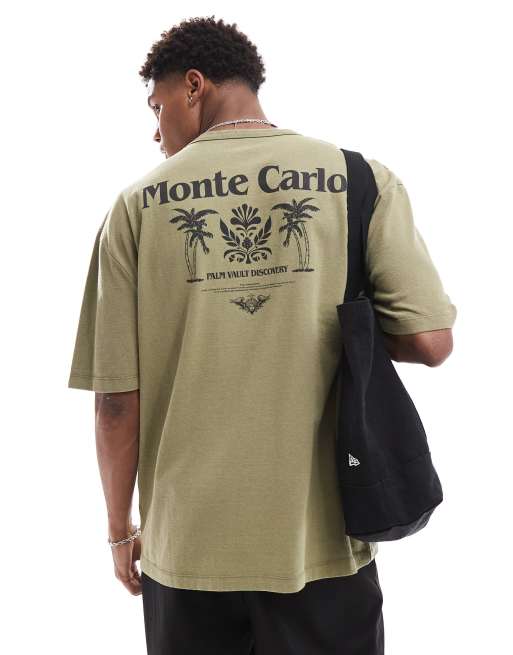 ASOS DESIGN – Gruby T-shirt oversize, o gramaturze 220 g/m<sup>2</sup>, w kolorze spranej zieleni, z nadrukiem „Monte Carlo" na plecach