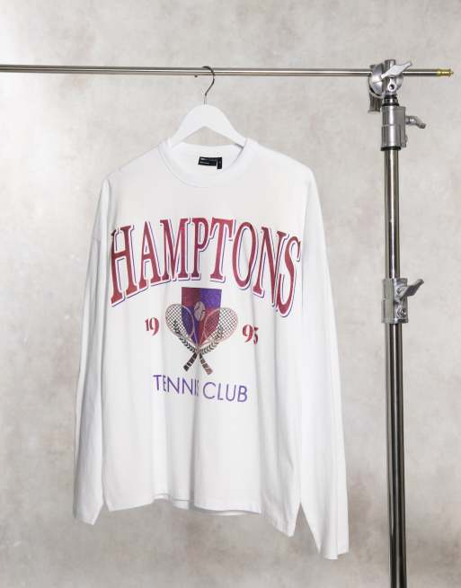 ASOS DESIGN – Gruby T-shirt oversize z długim rękawem i nadrukiem w stylu uczelnianym