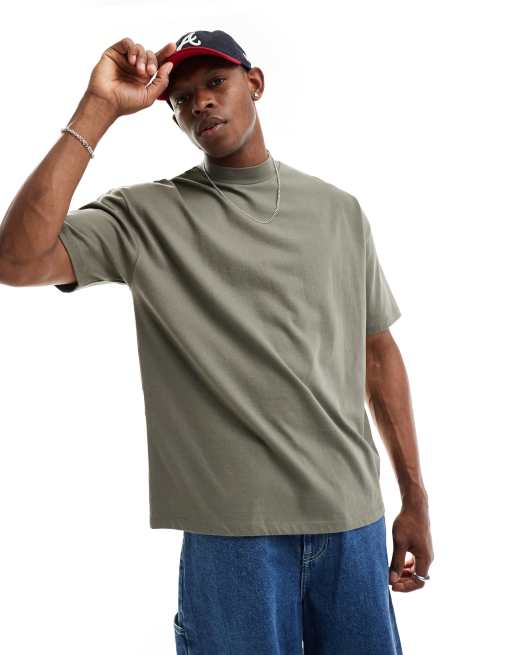 ASOS DESIGN – Gruby T-shirt oversize z półgolfem z kolorze khaki