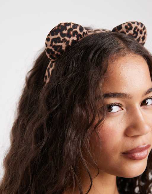 ASOS DESIGN – Halloween – Puszysta brązowa opaska na głowę z uszami we wzór w cętki