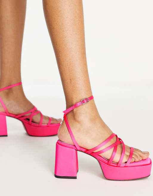 ASOS DESIGN – Hanon – Różowe sandały na platformie i obcasie z paskami