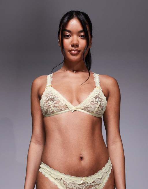 ASOS DESIGN – Hazel – Jasnożółty miękki biustonosz z trójkątnymi miseczkami z koronki