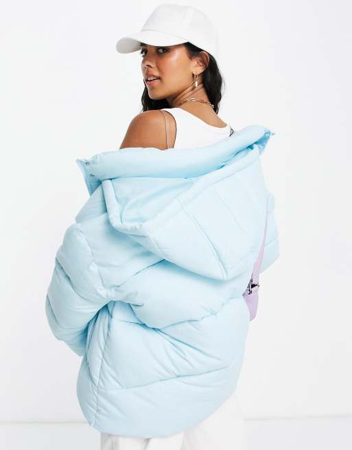 ASOS DESIGN – Hero – Niebieski płaszcz puchowy oversize z panelowym wzorem i kapturem