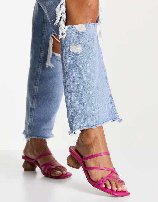 ASOS DESIGN – Hillary – Różowe klapki z paskami na obcasie