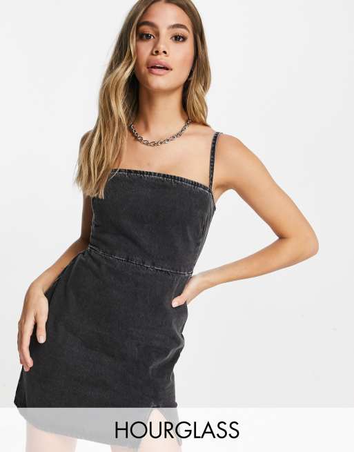 ASOS DESIGN Hourglass – Czarna jeansowa sukienka mini z paskami i efektem sprania