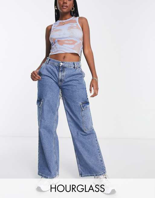 ASOS DESIGN Hourglass – Niebieskie jeansy bojówki z mieszanki bawełny z obniżonym stanem - LBLUE