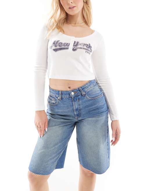 ASOS DESIGN Hourglass – Niebieskie szorty jeansowe o obszernym wydłużonym fasonie