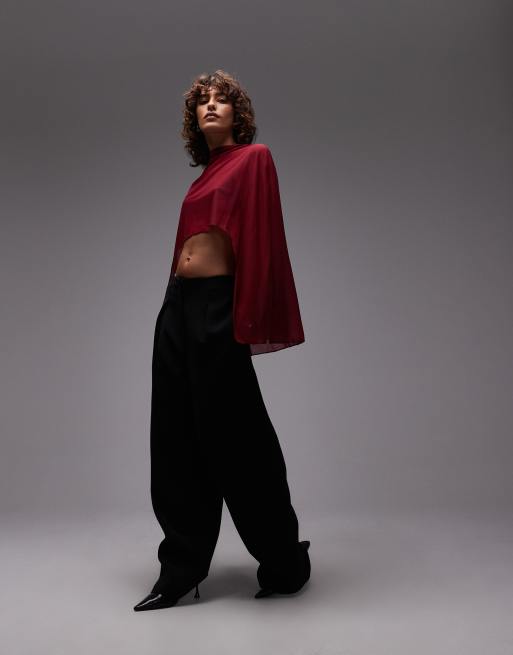 ASOS DESIGN – Jagodowa peleryna z prześwitującej siateczki o asymetrycznym fasonie