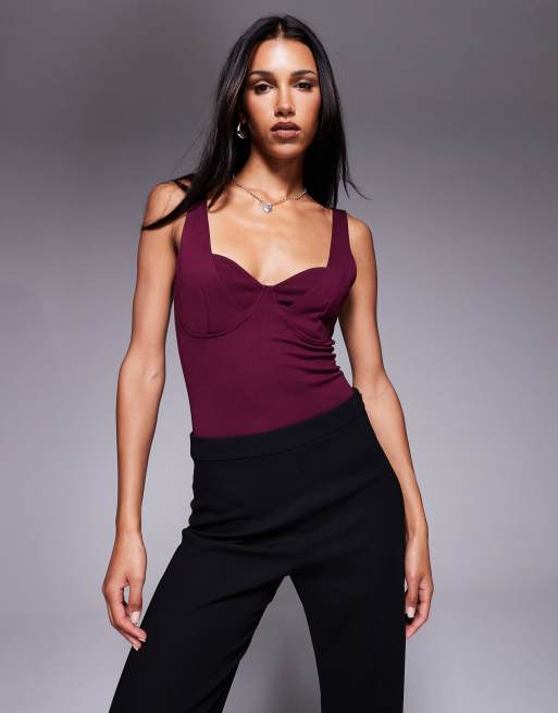 ASOS DESIGN – Jagodowe body z poliamidu z dekoltem w kształcie litery U