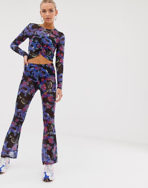 ASOS DESIGN – Jaskrawe spodnie z siateczki z nadrukiem smoka w zestawie