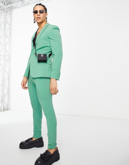 ASOS DESIGN – Jaskrawozielony garnitur o bardzo obcisłym kroju