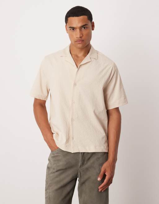 ASOS DESIGN – Jasnobeżowa koszula z kory o pudełkowym kroju z kołnierzykiem kubańskim