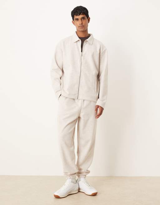 ASOS DESIGN – Jasnobeżowe melanżowe grube zwężane joggersy z materiału w stylu scuba