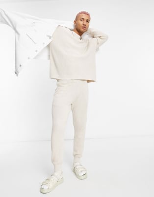 ASOS DESIGN – Jasnobeżowy prążkowany zestaw z bawełnianej dzianiny