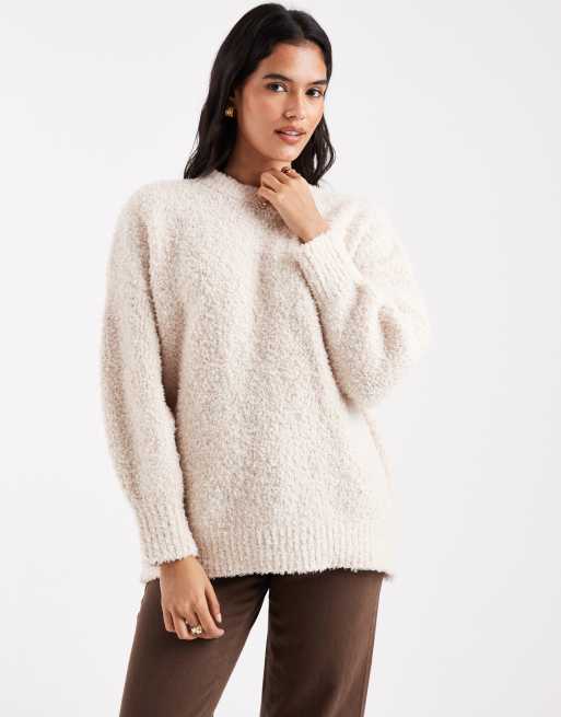 ASOS DESIGN – Jasnobeżowy sweter oversize z zaokrąglonym dołem z dzianiny boucle