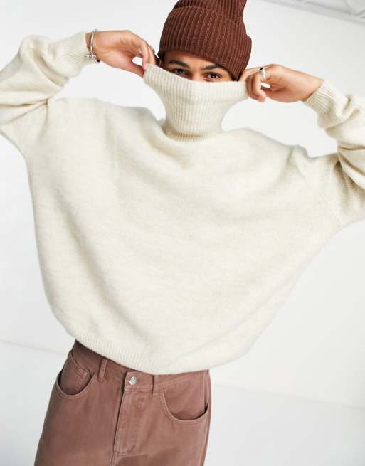 ASOS DESIGN – Jasnobeżowy sweter z puszystej dzianiny z golfem