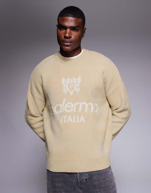 ASOS DESIGN – Jasnobeżowy szenilowy sweter oversize z grafiką z motywem Palermo