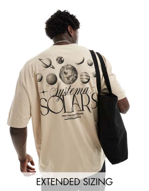 ASOS DESIGN – Jasnobeżowy T-shirt oversize z nadrukiem układu słonecznego na plecach