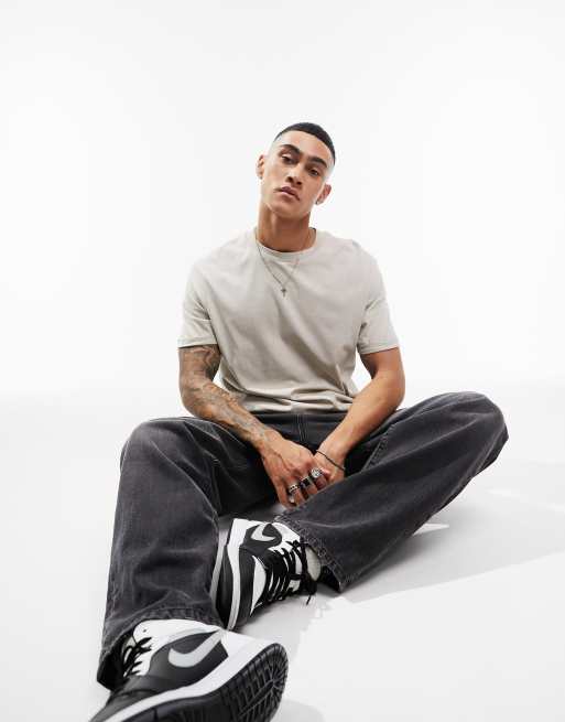 ASOS DESIGN – Jasnobeżowy T-shirt z okrągłym dekoltem i podwiniętymi rękawami