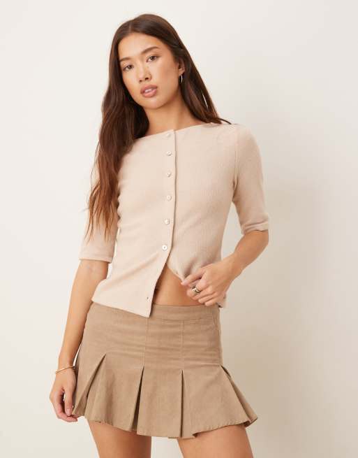 ASOS DESIGN – Jasnobeżowy, zapinany na guziki top z półrękawkami, o dopasowanym kroju