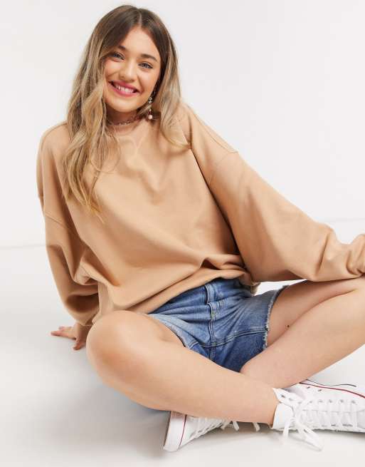 ASOS DESIGN – Jasnobrązowa bardzo luźna bluza o kroju kokonu ze wstawką