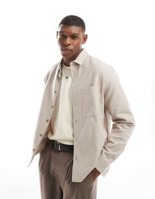 ASOS DESIGN – Jasnobrązowa szczotkowana koszula Oxford oversize o pudełkowym kroju