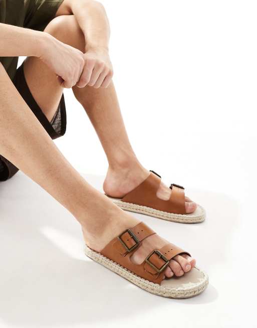 ASOS DESIGN – Jasnobrązowe sandały espadryle z dwoma paskami