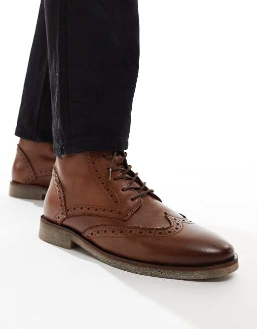 ASOS DESIGN – Jasnobrązowe, skórzane brogsy sznurowane, z naturalną podeszwą
