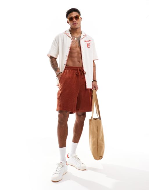 ASOS DESIGN – Jasnobrązowe szorty z bojówkowymi kieszeniami z prążkowanego weluru