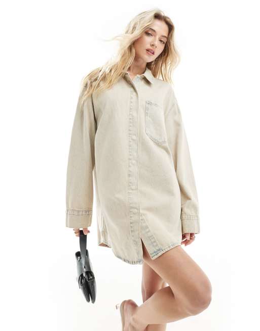 ASOS DESIGN – Jasnoniebieska jeansowa sukienka koszulowa mini z kieszeniami z przodu