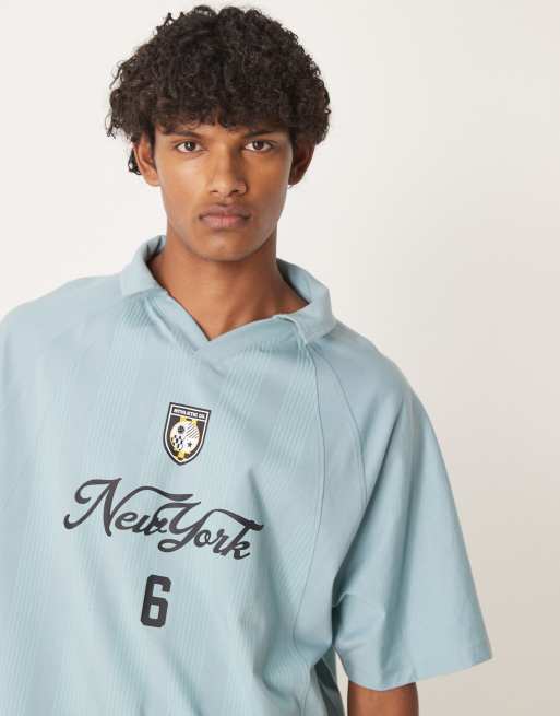 ASOS DESIGN – Jasnoniebieska koszulka polo o pudełkowym kroju oversize z grafiką sportową