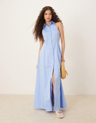 ASOS DESIGN – Jasnoniebieska sukienka koszulowa maxi bez rękawów