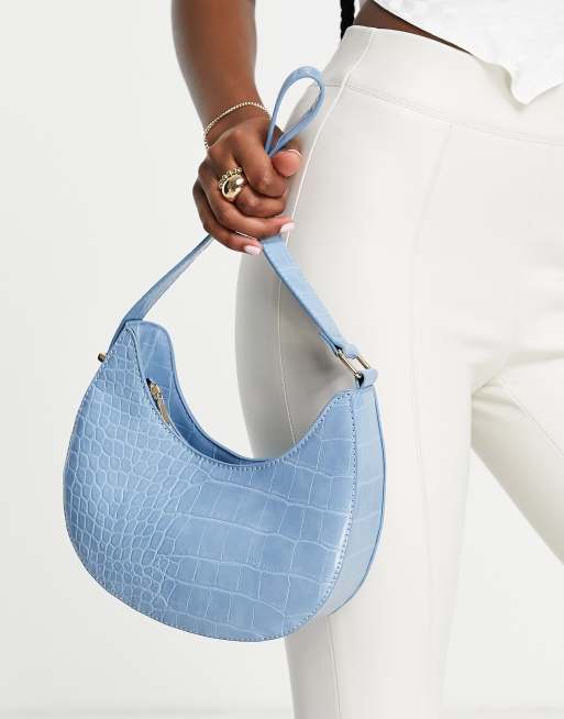 ASOS DESIGN – Jasnoniebieska torebka na ramię z długim paskiem i efektem skóry krokodyla