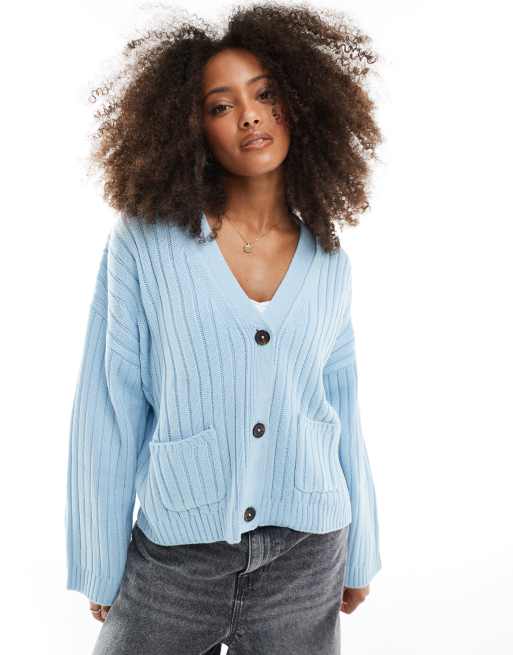 ASOS DESIGN – Jasnoniebieski prążkowany kardigan o wydłużonym pudełkowym fasonie