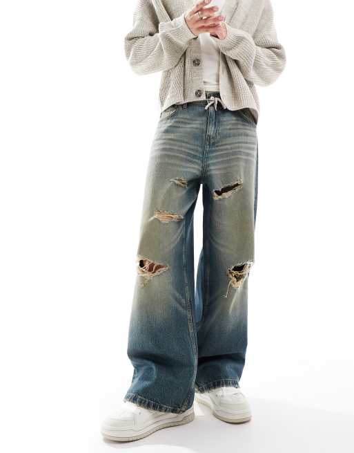 ASOS DESIGN – Jasnoniebieskie bardzo luźne jeansy z efektem przebarwienia