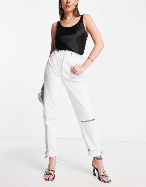 ASOS DESIGN – Jasnoniebieskie jeansy mom fit z rozdarciami na kolanach