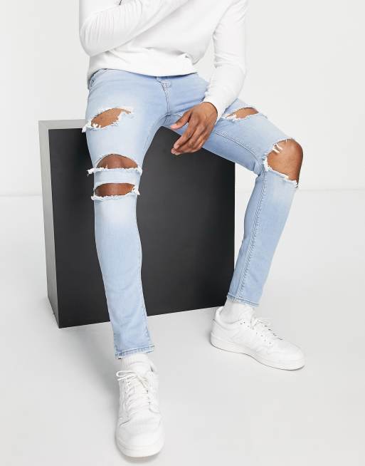 ASOS DESIGN – Jasnoniebieskie jeansy o bardzo obcisłym kroju z power stretchem i przetarciami