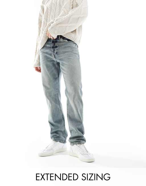 ASOS DESIGN – Jasnoniebieskie jeansy z prostymi nogawkami i przetarciami